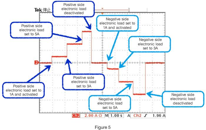 Note that if current is applied to the electronic loads on both the positive and negative sides of the circuit simultaneously, the current flowing across the current sensor will be the sum of these two currents.