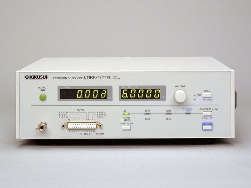 KDS6-0.2TR is designed for use on production and inspection lines for high-frequency components capable of low supply current and low voltage operation that have become dominantly popular in recent years, as well as for a variety of electronic devices such as ICs, LSIs,and sensors. This product is a low-noise, highly stable DC voltage power supply with 3-channel output.